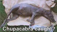 Нынешняя находка, сделанная владельцем ранчо на юге Техаса вновь поднимает вопрос о существовании чупакабры. Фермер давно пытался заполучить загадочное животное, которое в течение нескольких лет бродило неподалёку и убивало кур. По словам фермера, за это время были убиты две дюжины цыплят. У них была высосана кровь, а мясо осталось нетронутым.