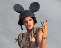 «Мне хотелось выглядеть дерзкой и свободной, - признается Рианна. - Подобранный для меня костюм в стиле "эротического милитари" и каска с Микки-Маусом вполне соответствуют идее видео, в котором я призываю женщин быть хозяйками своих судеб, быть смелыми, жить в собственное удовольствие и находить в себе силы быть счастливыми, несмотря на прошлые трагедии».